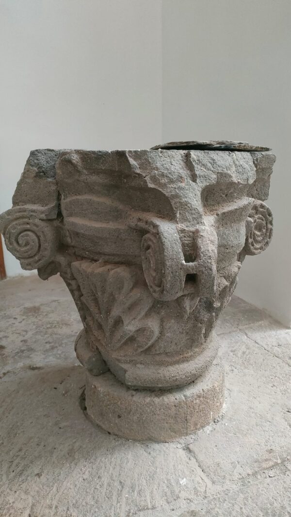 Dentro de la Casa del Obispo también se conservan restos originales de columnas y capiteles que hoy se exhiben como testigos materiales de su pasado. Tallados en piedra volcánica, estos fragmentos muestran la importancia del estilo clásico reinterpretado en Canarias, con volutas, hojas de acanto y motivos que recuerdan la influencia del orden jónico y corintio. Aunque se encuentran deteriorados por el paso del tiempo y por los estragos del incendio de 2006, su presencia otorga al edificio un valor añadido, al permitir al visitante contemplar de cerca piezas que en su día fueron parte estructural y ornamental del palacio.