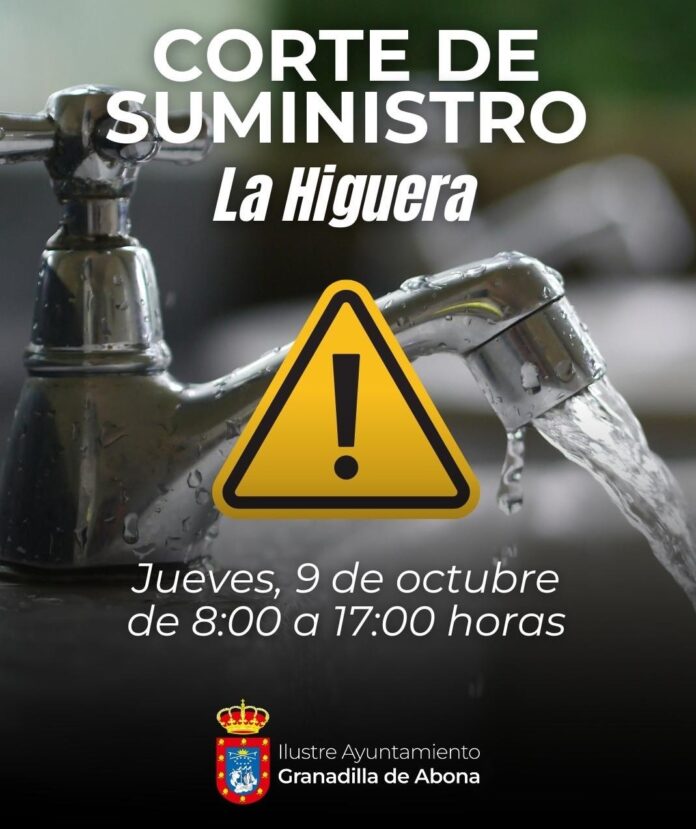 El Ayuntamiento de Granadilla de Abona y Entemanser informan de una interrupción programada del suministro este jueves 9 de octubre, entre las 08:00 y las 17:00 horas