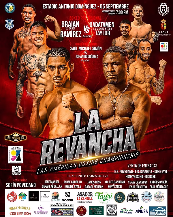 El combate principal ofreció la esperada revancha entre el tinerfeño Braian “El Dandi” Ramírez (5-1-1, 3 KO) y el grancanario Gadatamen Taylor “La Mamba Negra” (7-16-1, 3 KO).