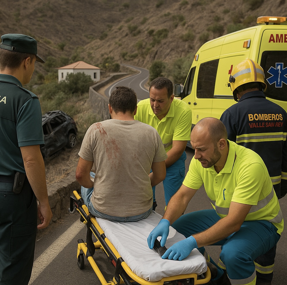 Un hombre resultó herido este domingo tras sufrir un accidente de tráfico en la carretera GM-1, a la altura de la zona conocida como El Picacho, en el municipio de Valle Gran Rey, en la isla de La Gomera. El siniestro tuvo lugar alrededor de las 14:10 horas, cuando el vehículo en el que circulaba el afectado se salió de la vía, impactó contra la fachada de una vivienda y, posteriormente, se precipitó por un barranquillo, quedando en una posición de riesgo que obligó a una rápida intervención de los equipos de emergencia.