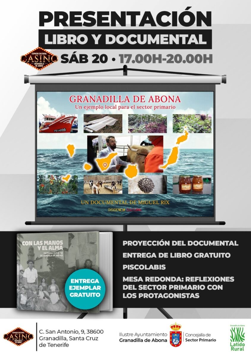 El evento acogerá la presentación de un libro, realizado por la Productora Le Canarien Group S.L., así como la proyección de un documental dirigido por Miguel RIX. Dos trabajos que reflejan con sensibilidad y cercanía la realidad del sector primario local, mostrando el sacrificio, la constancia y el compromiso de quienes han dedicado su vida a los oficios ligados a la tierra.