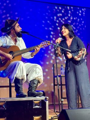 Durante el espectáculo se escucharon canciones típicas interpretadas con gran maestría, acompañadas de instrumentos tradicionales como la guitarra y el acordeón, que marcaron el ritmo de la noche. La combinación de voces y música en directo creó una atmósfera vibrante que no dejó indiferente a nadie. En muchos momentos, el público acompañó con palmas y algunos incluso se animaron a seguir el compás desde sus asientos, demostrando la conexión que se generó entre artistas y espectadores.
