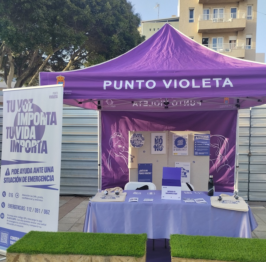 El Punto Violeta se ubicó en la plaza principal de El Médano, funcionando desde las 18:00 hasta las 24:00 horas, coincidiendo con el horario de mayor asistencia de la romería. Para garantizar un servicio profesional y efectivo, el stand fue atendido por dos especialistas con formación específica en materia de género, violencia machista y violencia sexual, quienes ofrecieron información, orientación y acompañamiento a todas las personas que se acercaron al lugar.